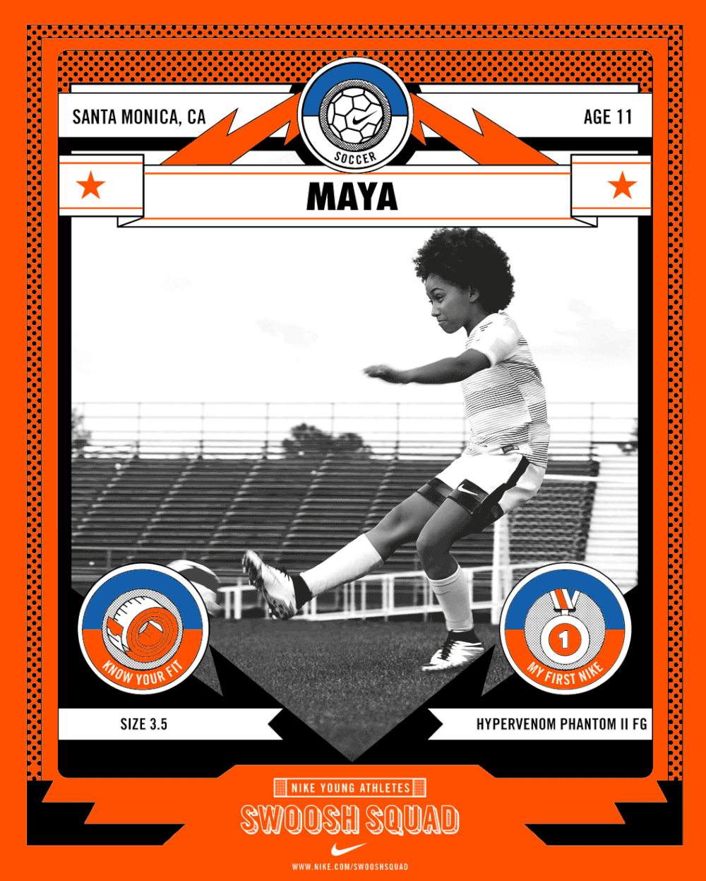 Nike wanted a way to capture the hearts and minds of the youth, so we created the Swoosh Squad, a club for young athltes all over the world.